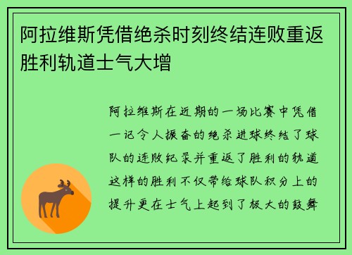阿拉维斯在近期的一场比赛中,凭借一记令人...