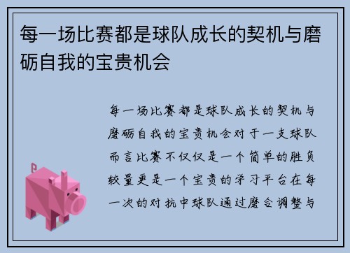 每一场比赛都是球队成长的契机与磨砺自我的...