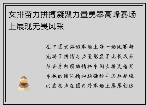 在中国女排的赛场上,每一场比赛都充满了拼...